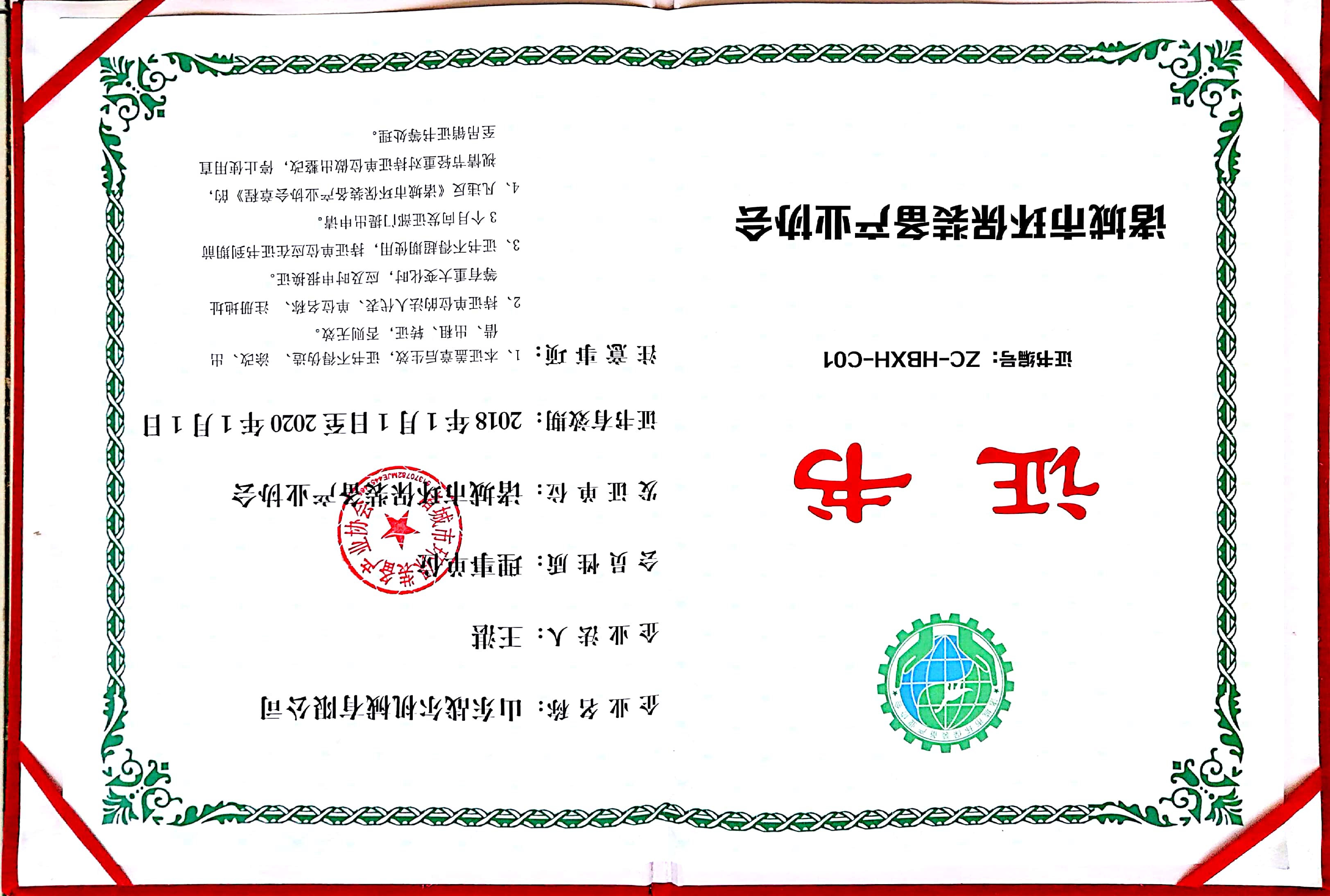 环保产业装备证书